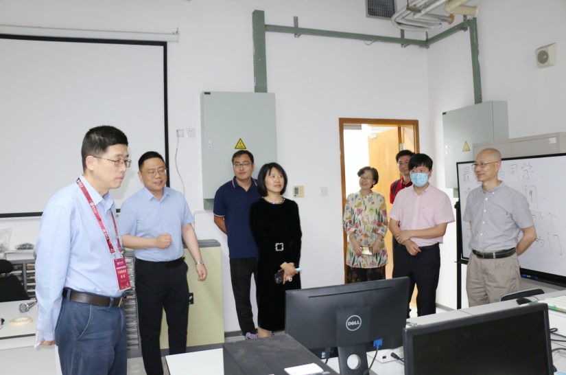 在陪同人员的指引下,徐雷一行先后实地观摩了位于致原楼7楼的光电教学实验中心、本科学生创新实验室(创新部)和大学物理实验中心。相关负责人详细介绍各个实验室仪器设备的工作原理及其应用,并针对徐雷的提问进行深入细致的解答。扎实的专业知识、谨严的工作态度、清晰的言语表达给专家们留下深刻印象。