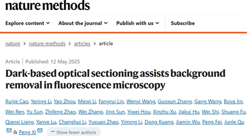 论文信息:Cao, R., Li, Y., Zhou, Y. et al. Dark-based optical sectioning assists background removal in fluorescence microscopy. Nat Methods (2025). //doi.org/10.1038/s41592-025-02667-6