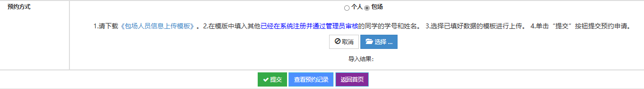 注意,《包场人员信息》中的人员要先完成注册,本次预约才对其有效。