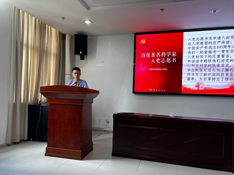 最后,刘铎洵分享了贝时璋和陈世骧的故事。同学们从两位科学家的故事中,深刻感悟到了他们对科学纯粹热爱的执着精神以及为国家科学事业无私奉献的崇高品质。面对国家科学领域的挑战与困难,两位科学家毫不犹豫地递交入党申请,将个人的理想与国家的需要紧密结合,用实际行动诠释了党员先锋模范作用。同学们决心以他们为榜样,为国家的科技进步贡献自己的力量。