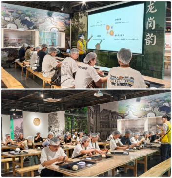 活动伊始,营员们沉浸式体验了桂花饼制作的全过程。在专业指导老师的示范下,大家从揉面、搓馅到压模、塑形,一步步认真操作,指尖流转间感受传统糕点制作的匠心。面团的软糯、桂花与豆沙的香甜交织,不仅让营员们体会到劳动的乐趣,更在亲手制作“重阳限定”美食的过程中,拉近了与传统节日的距离。看着自己亲手完成的桂花饼送入烤箱,期待之情溢于言表,营员也在实践中真切触摸到传统美食背后的匠心与温度。