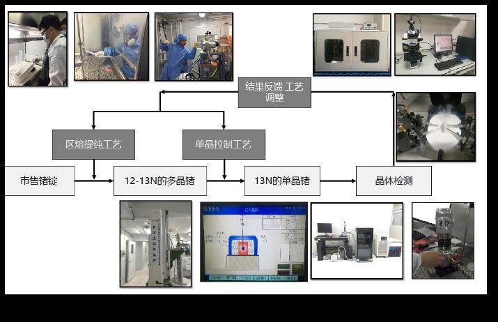 深圳高纯锗材料与探测器研究与制造重点实验室成立于2011年,实验室面积约300平方米,自主研发了适用于高纯锗单晶制备所需的区熔设备与直拉式单晶炉设备;突破了区熔锗多晶杂质的高效分离关键技术与低位错锗单晶直拉法生长技术;形成高纯锗单晶制备与质量检测完整工艺流程。目前针对高纯锗单晶的产业化,团队设计与开发锗单晶制备工程化工艺与设备,未来将为彻底解决高纯锗单晶国产化问题提供方案。